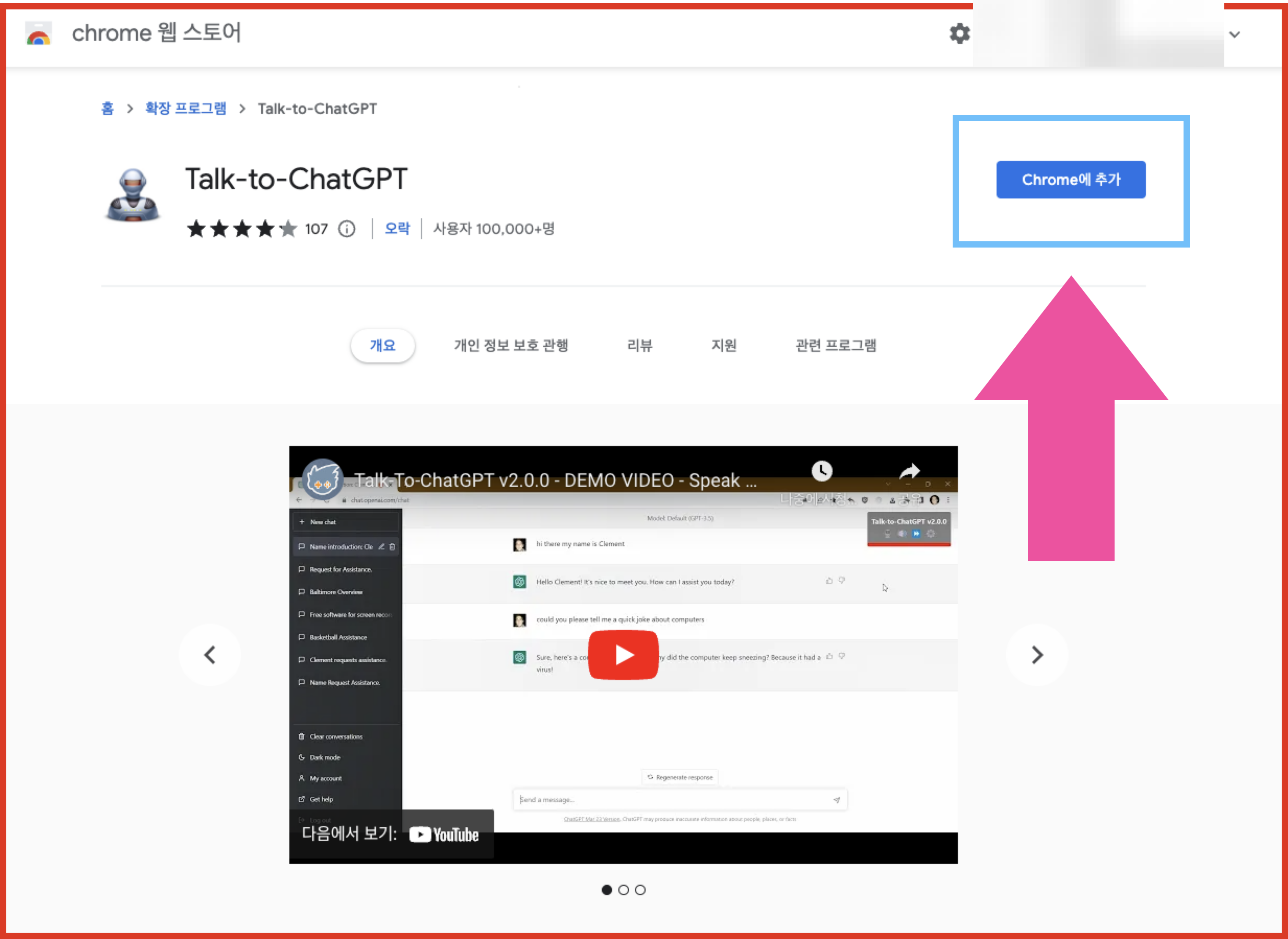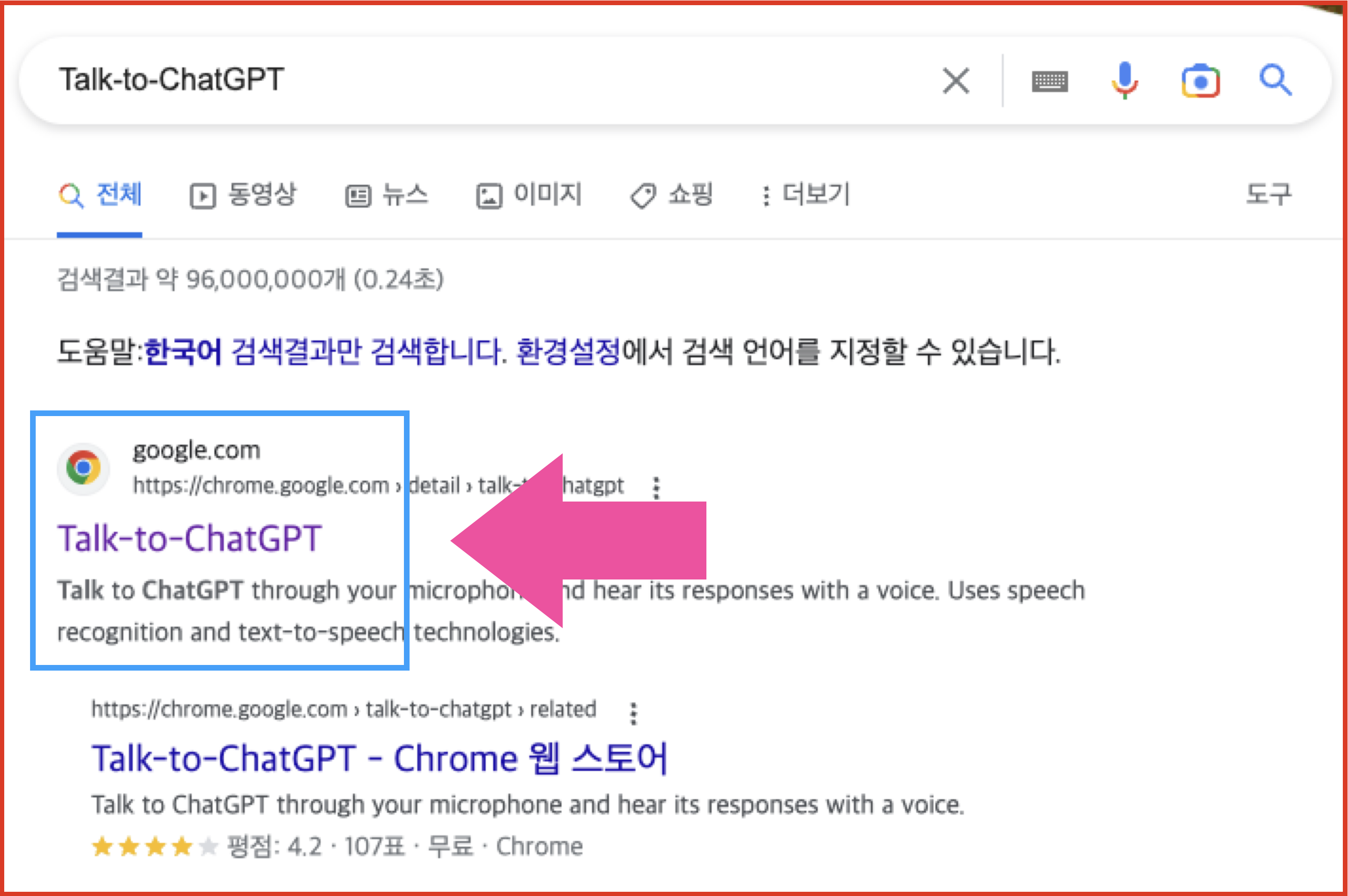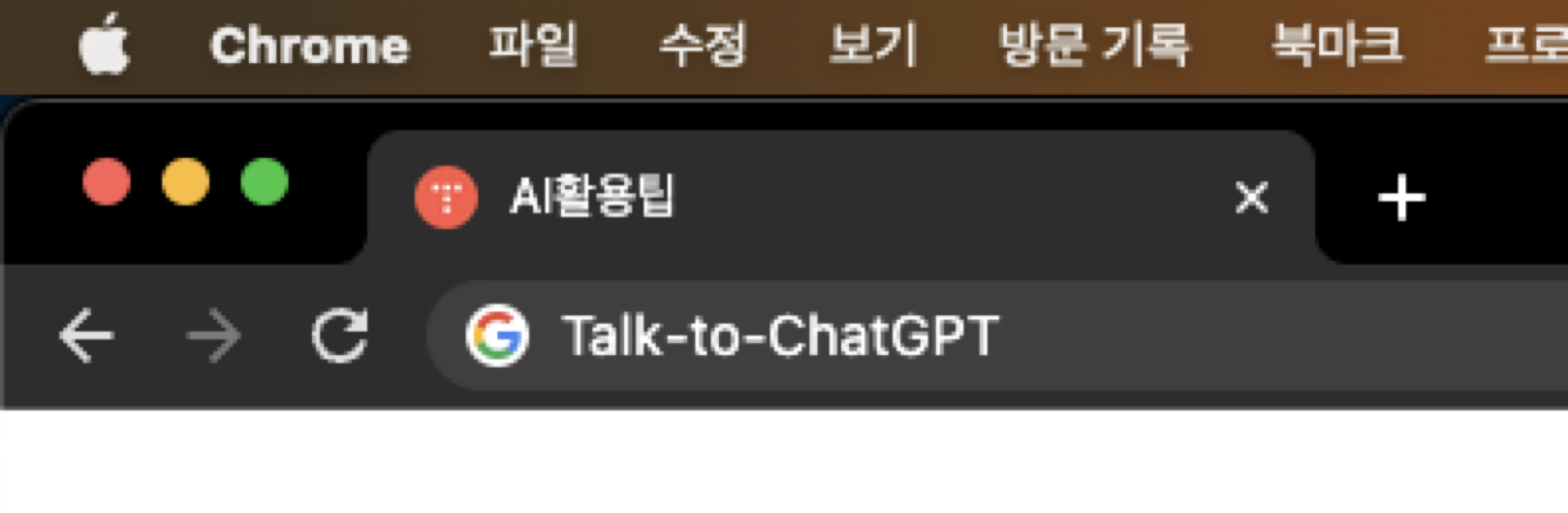 먼저 브라우저는 크롬을 사용해야 합니다. 다음으로 주소창에 "Talk-to-ChatGPT"를 입력하고 엔터를 입력합니다.